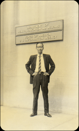 Chung Wai Ming outside Voice of America, Washington, D.C.In 1961, Chung Wai Ming was sent for training for six months at Voice of America in Washington, D.C. This photo was taken outside the Voice of America office.