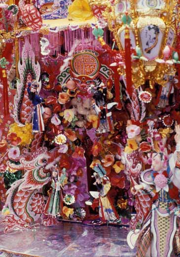 这属于花炮第二个福鼠装饰,位于炮身中间部分,几乎已被周围重重的装饰掩盖。福鼠全身红色,脸部细小,福环位于顶部的黄花之下。